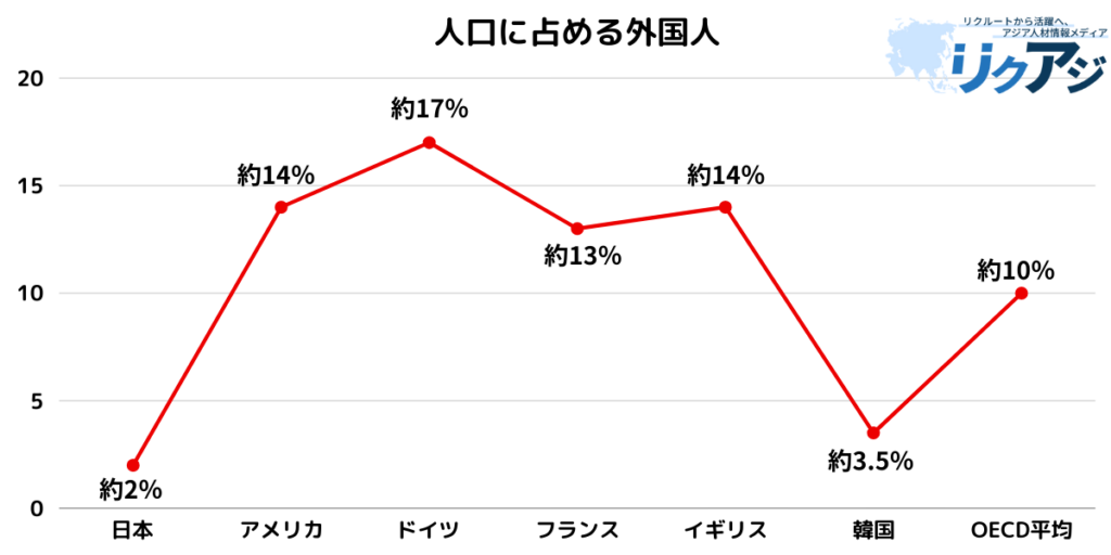 世界と比べて日本の外国人比率は低い