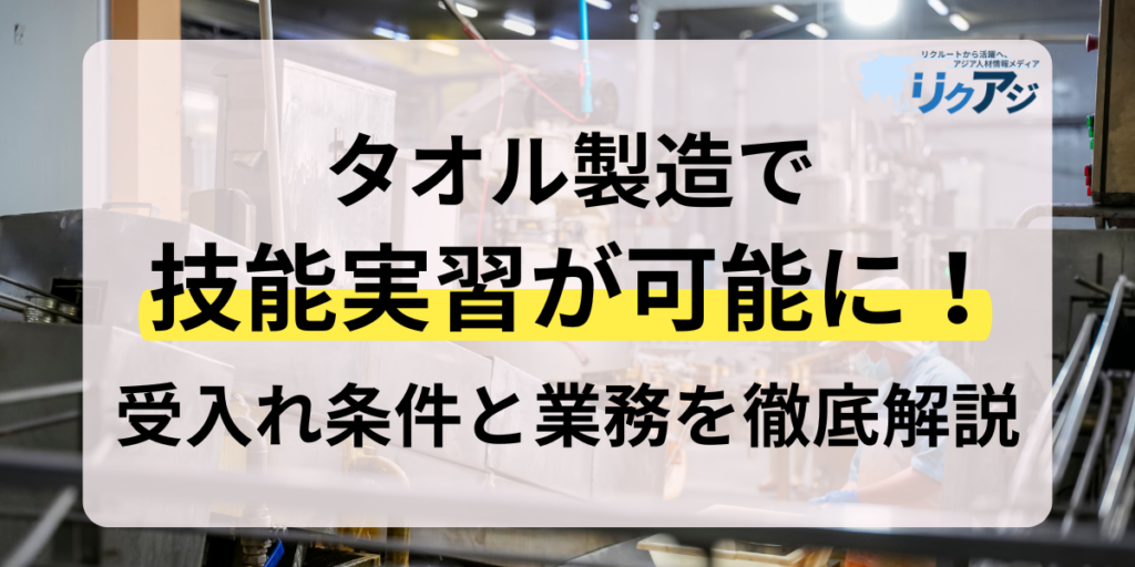 今回の「タオル製造」の追加は、この2027年の新制度を見据えた動きでもあります。今から技能実習での受入れ体制を整えておくことで、新制度が始まった際にもスムーズに優秀な人材を確保し続けることができます。