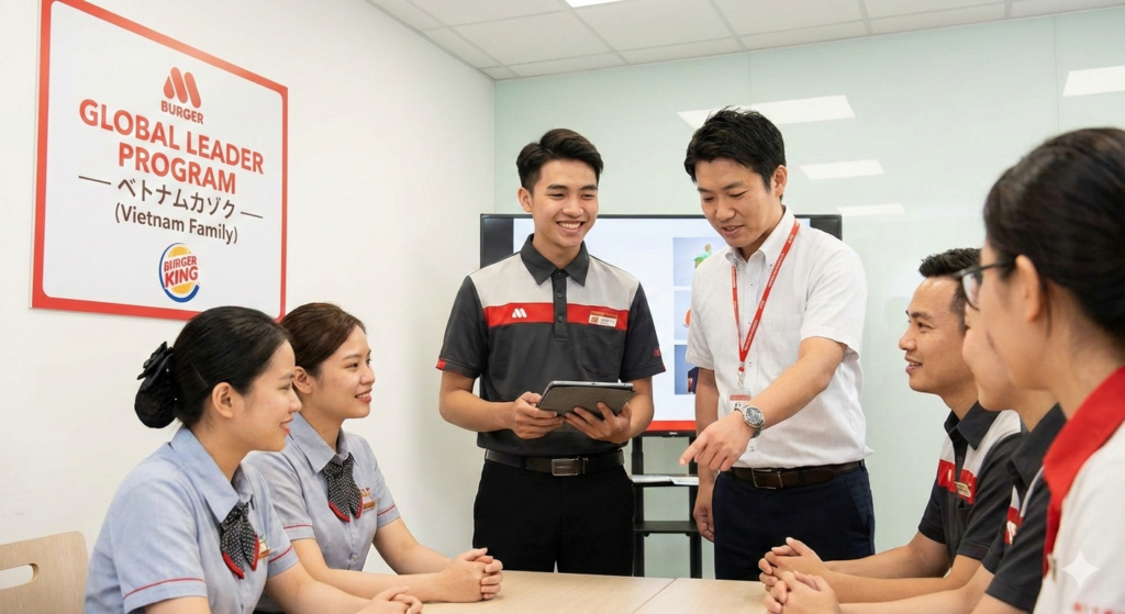 実際に、特定技能2号を活用して外国人リーダーを育成している大手外食チェーンの事例を見てみましょう。ある大手ハンバーガーチェーンでは、ベトナムの教育機関と提携し、将来の幹部候補を育てる独自のプログラムを運用しています。