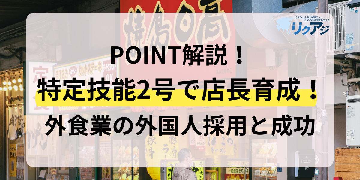 日本の外食業界で深刻化する人手不足。その解決策として、いま「特定技能2号」という在留資格(日本に滞在して働くためのライセンス)に注目が集まっています。単なる現場作業の担い手ではなく、店長や幹部候補として外国人を育成する企業が増えているのです。