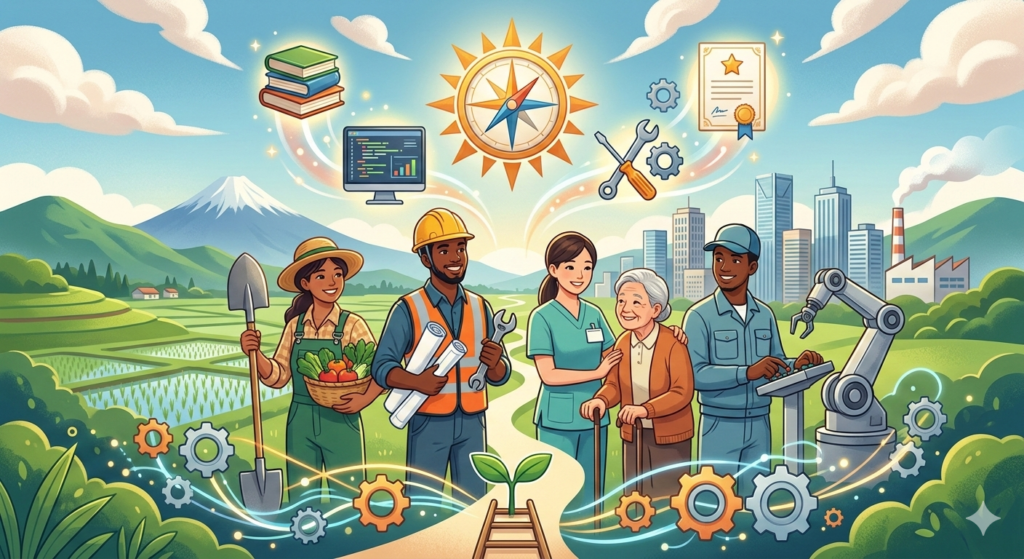 育成就労制度の最大の目標は、日本の職場で3年間の就労を通じて、外国人に「特定技能1号」水準の技能を修得させることです。