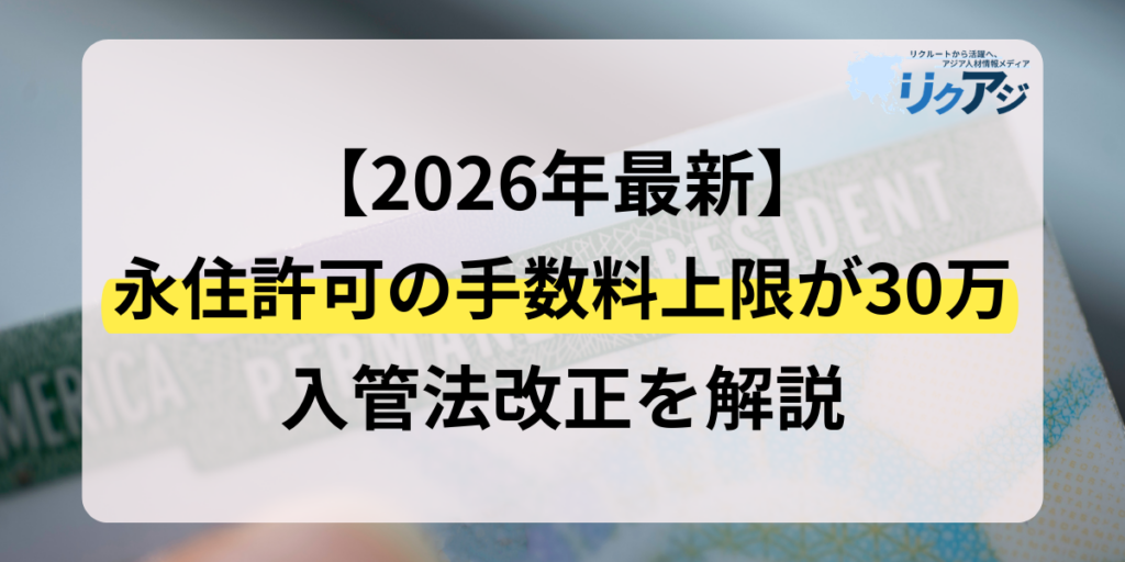 - 永住許可の手数料上限が30万円に、更新・変更が10万円に引き上げられる方針。