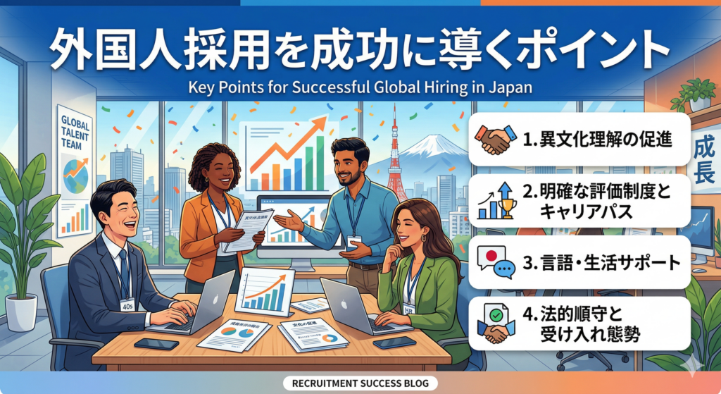 外国人採用は、企業の深刻な人手不足を解消し、組織に新しい価値観をもたらす素晴らしい手段です。正しい知識を持ち、適正な管理と温かいサポート体制を両立させることで、企業と外国人従業員が共に成長できる環境を築いていきましょう。